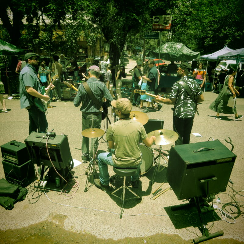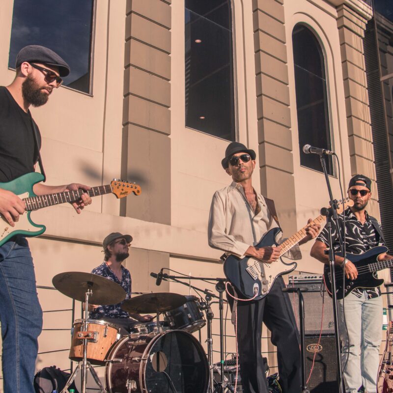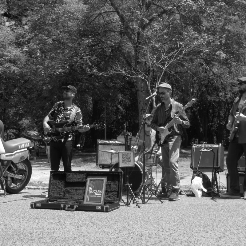 Destaque no cenário underground de Porto Alegre, a Juçara Blues e as Plantas de Cachoeira iniciou sua trajetória em 2015 desenvolvendo seu som e repertório entre a capital e os vales do Rio Maquiné, no litoral norte do RS. A formação atual conta com a liderança de Bohlee na guitarra e vocal, o groove marcante do baixista Koko Nascimento, os solos de estrada do guitarrista Fred Kingston, e a bateria multi-facetada do polivalente Gabriel Macalé. A banda tem como principal referência o houserockin’, um estilo de blues de rua tocado para animação de bailes e festas, geralmente executado de uma maneira relaxada, informal e espontânea buscando contagiar quem passa com músicas vibrantes e intimistas. O som do grupo começou com o estudo de clássicos do gênero, mas com o tempo se voltou para a composição de versões e material em português. O espetáculo “Blues das Ruas” é fruto desse trabalho de pesquisa e criação musical e que apresenta de forma visceral o houserockin’ da Juçara Blues.